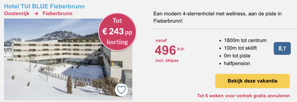 Heb je je volgende wintersport naar je favoriete skigebied al geboekt? Als het antwoord ‘nee’ is, raden we je aan om eens naar de onderstaande wintersportdeals te kijken. Voor gunstige prijzen, vaak dankzij vroegboekkortingen en acties, kun je volgend skiseizoen tegen een leuke prijs de sneeuw in. Zit er iets voor je bij?