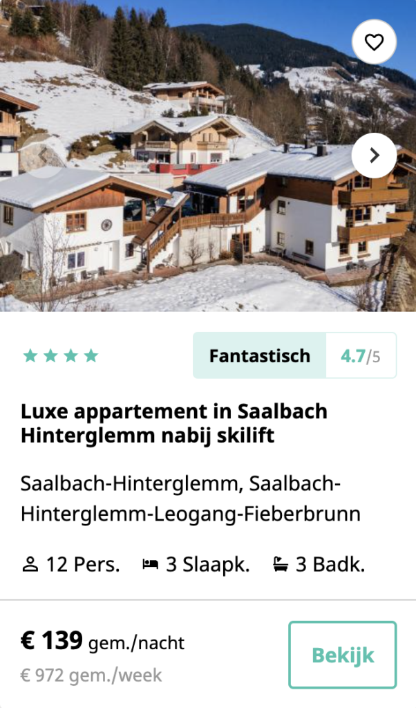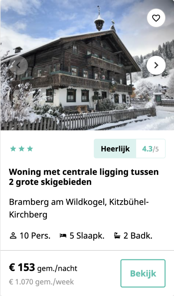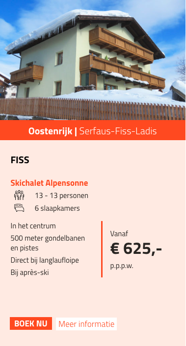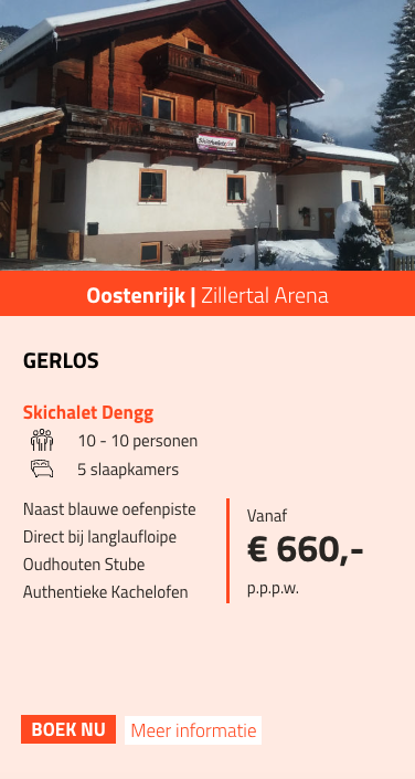 Het ideale bij Sunweb is dat je skipas altijd inclusief is bij het verblijf dat je boekt! Dus ook bij de volgende accommodaties voor 10 of meer personen. Denk daar vooral aan als je naar de prijs kijkt. Je skipas is al geregeld namelijk. Er zijn veel mooie bestemmingen voor een groepsvakantie naar Oostenrijk. Heb je bijvoorbeeld al eens overwogen om naar Kirchberg, Zell am Ziller, Serfaus of Wagrain af te reizen?