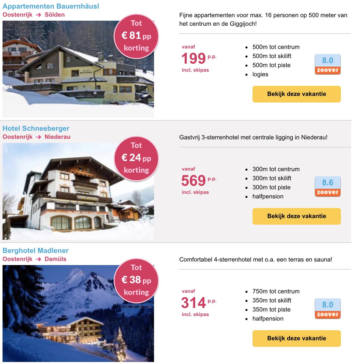 Veel vroegboekkortingen lopen tot eind oktober, daarna gelden voor veel accommodaties de reguliere prijzen. Als je boekt via een reisorganisatie zoals Summit Travel is je skipas vaak inbegrepen en dat scheelt behoorlijk in je portemonnee. Bekijk bijvoorbeeld de aanbiedingen hieronder.