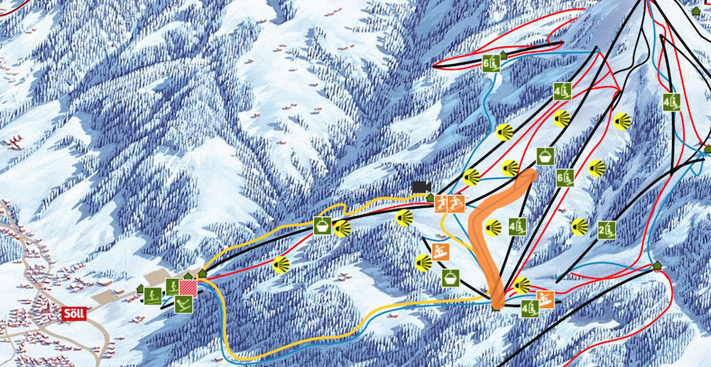 Piste 44 gemarkeerd met oranje.