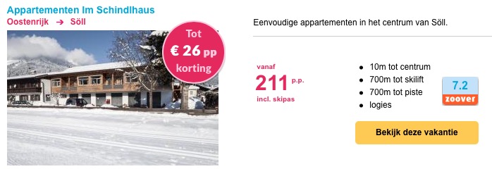 Begint de wintersport nu bij jou ook al te kriebelen. Je kunt deze accommodatie voor 7 dagen boeken vanaf €322,- per persoon inclusief skipas. Het enigste wat je zelf nog moet verzorgen is een gezellige groep mensen. Wat een goede prijs, deze kans laat jij toch ook niet liggen? Boek hier de accommodatie.