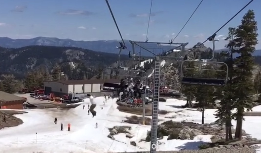 Alex Kalange greep de laatste dag van het skiseizoen in Squaw Valley aan om een frisse duik te nemen in het waterreservoir dat gebruikt wordt door de sneeuwkanonnen. En dat doet hij is stijl: vanuit de skilift. We raden het natuurlijk niet aan, maar voor deze ene keer moesten we wel lachen.