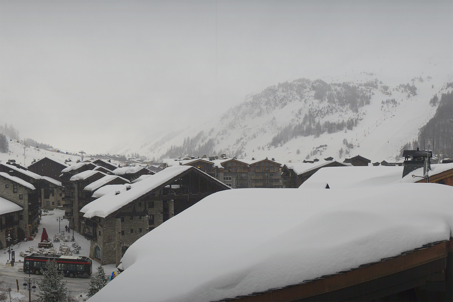 Kijkend naar de webcams in Frankrijk en Zwitserland in de skigebieden zien we vooral veel wolken! Ook zijn het landschap en de gebouwen weer bedekt onder een laagje sneeuw. Kijk maar mee!