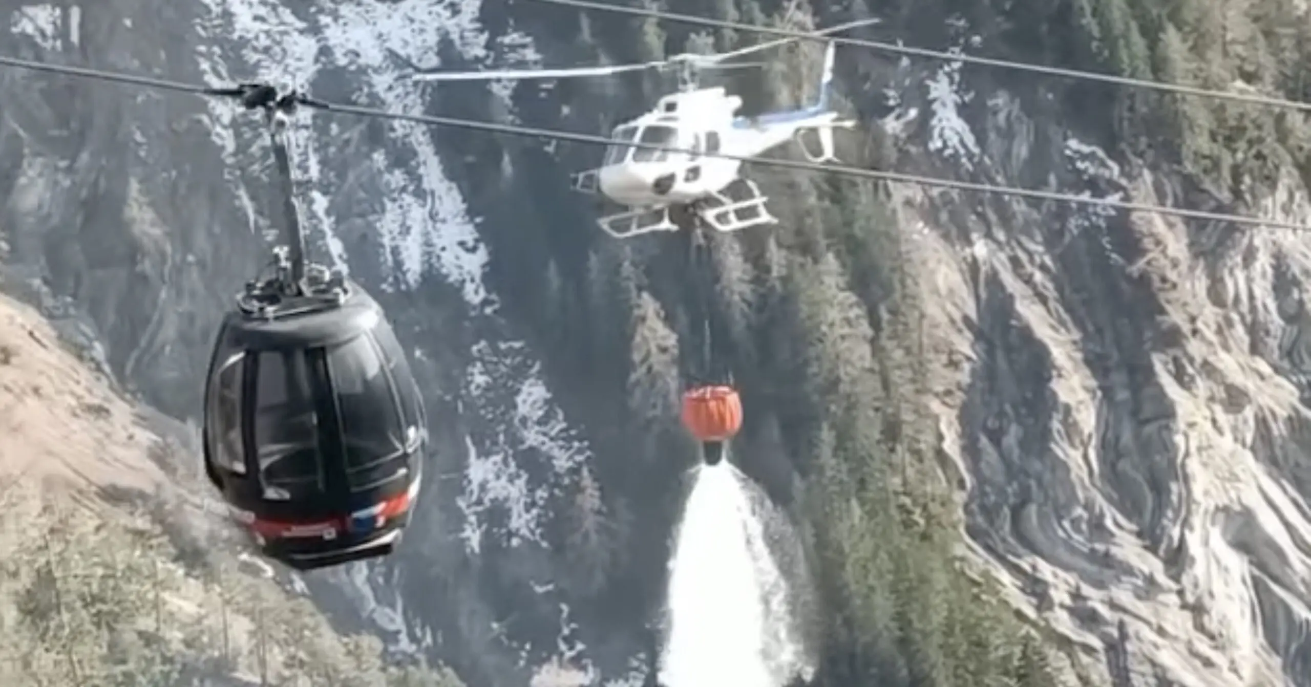In de video hieronder zie je hoe dicht de brand bij de gondel was en zie je de helikopter aan het werk.
