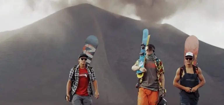 The North Face-atleten skiën en snowboarden van actieve vulkaan