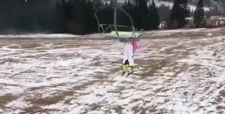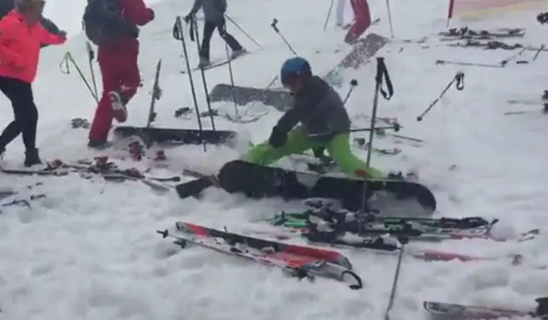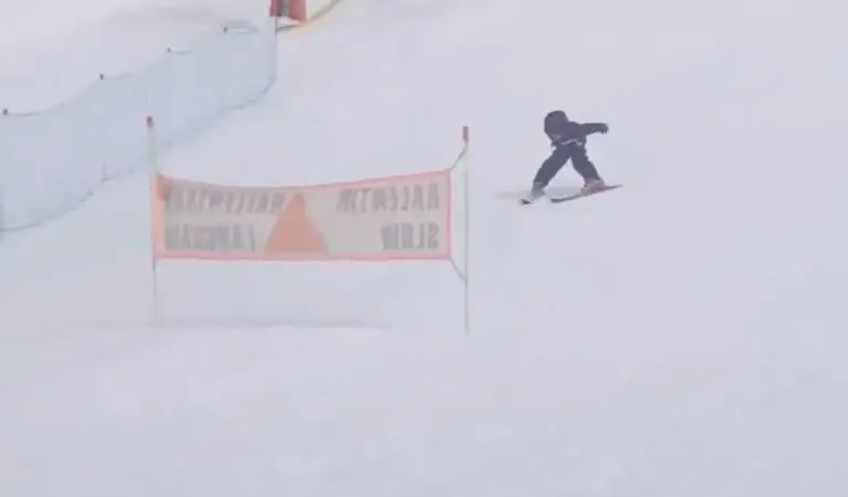 Deze snowboarder heeft de ankerlift niet zo goed begrepen