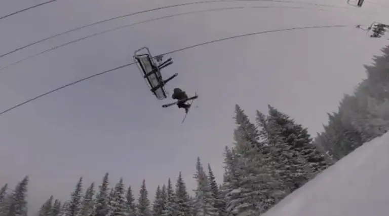 63-jarige skiër springt 6 meter hoge klif alsof het niets is