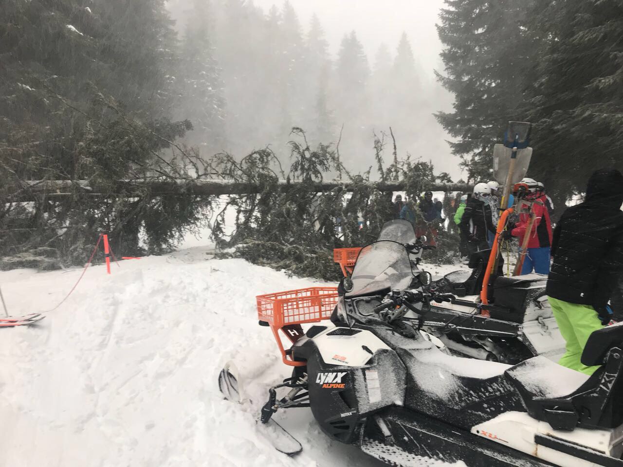 Het was vandaag goed mis in veel Oostenrijkse skigebieden. Liften stonden stil en sommige skigebieden waren helemaal gesloten. Dit bleek uiteindelijk een goede keuze te zijn. Omgewaaide bomen versperden de pistes en het was dan ook een gevaarlijke situatie voor de skiërs die daar op dat moment waren. Dit in combinatie met zware windstoten en een beperkt zicht. Sommige wintersporters hadden beter warm binnen kunnen blijven. Als skifanaat zit je daar echter helemaal niet op te wachten natuurlijk. De onderstaande foto laat ziet wat een chaos het was.