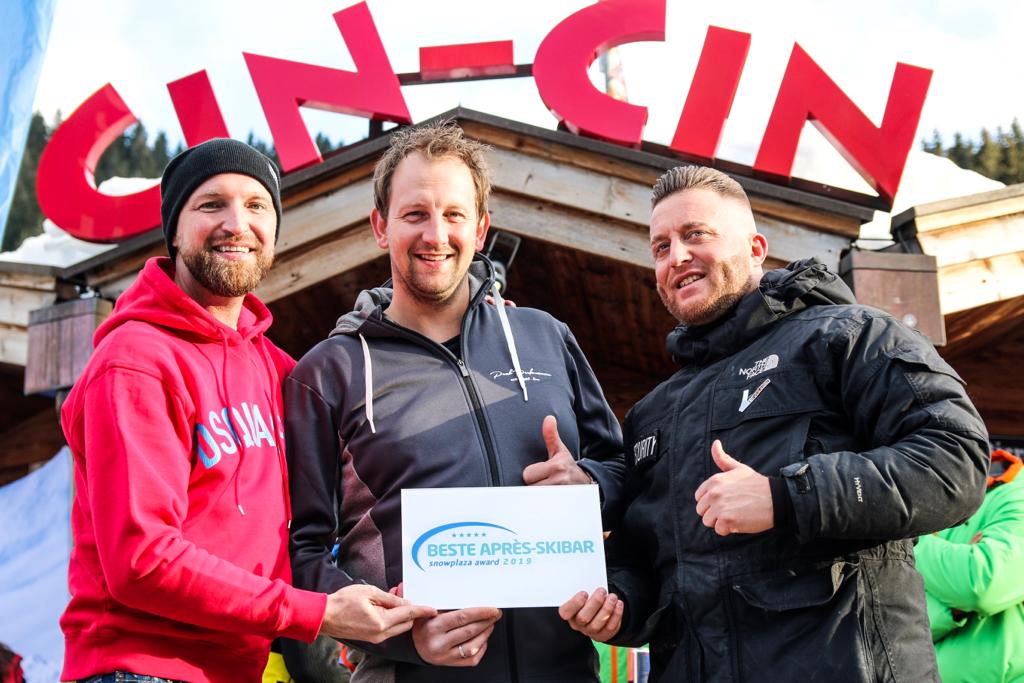 Ieder wintersportseizoen is Snowplaza op zoek naar de beste in 10 verschillende categorieën tijdens de Snowplaza Awards. Eén van die categorieën is de beste après-skibar. Nederlandse wintersporters hebben de afgelopen maanden massaal gestemd op hun favorieten. Wederom is de Cin Cin verkozen tot beste après-skibar. Eigenaar Jakob Platzer is hartstikke trots en blij met de award. Met de winst laat hij de Hofstadl en Goaßstal achter zich. Bekijk hieronder de foto’s van de awarduitreiking.