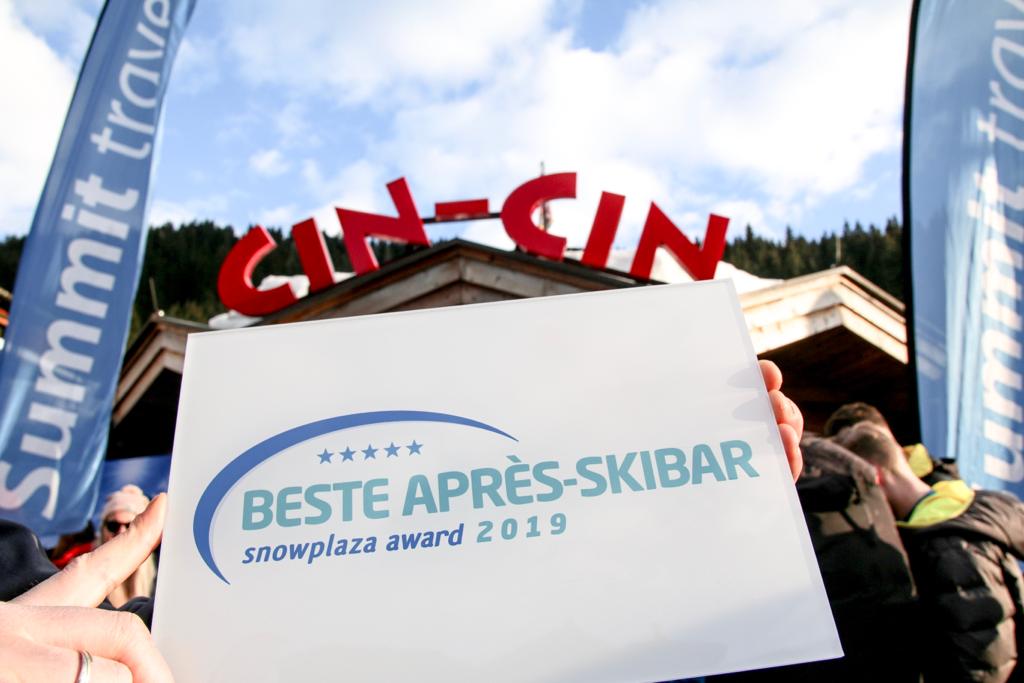 Ieder wintersportseizoen is Snowplaza op zoek naar de beste in 10 verschillende categorieën tijdens de Snowplaza Awards. Eén van die categorieën is de beste après-skibar. Nederlandse wintersporters hebben de afgelopen maanden massaal gestemd op hun favorieten. Wederom is de Cin Cin verkozen tot beste après-skibar. Eigenaar Jakob Platzer is hartstikke trots en blij met de award. Met de winst laat hij de Hofstadl en Goaßstal achter zich. Bekijk hieronder de foto’s van de awarduitreiking.