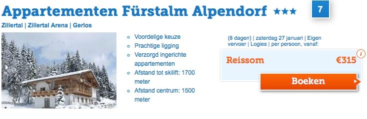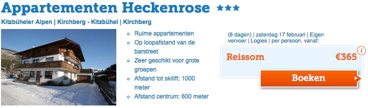 Het appartementencomplex Heckenrose is eenvoudig en is gelegen op een toplocatie. Je verblijft namelijk dichtbij het centrum en op 1 kilometer afstand ligt het skigebied voor je klaar. Dit gebied is geschikt voor zowel de beginnende als de gevorderde skiër. Daarnaast zijn er in dit skigebied ook genoeg mogelijkheden voor de kinderen. Het is een echt familiegebied. Boek deze wintersport hier voor €365,- per persoon.