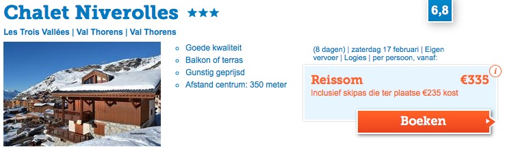 Chalet Nivorolles is netjes ingericht en is op loopafstand van het centrum en de piste van Val Thorens. Dit zorgt ervoor dat je in een mum van tijd kunt genieten van 605 kilometer aan pistes. De beginners kunnen oefenen op de eenvoudige pistes en de gevorderde skiër kan heerlijke tochten maken over de variërende pistes. De skidag wordt aan het einde van de dag afgesloten in de bruisende après ski. Boek hier dit prachtige chalet.