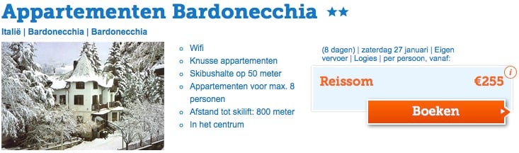 De appartementen van Bardonecchia zien er alleen al aan de buitenkant bijzonder sfeervol uit. Bedenk erbij dat de skilift op nog geen kilometer afstand zit en het is eigenlijk de perfecte accommodatie. De 100 kilometer aan pistes zorgen er ook nog eens voor dat je je als wintersporter prima vermaakt. Je boekt deze last-minute al voor €255,- per persoon.