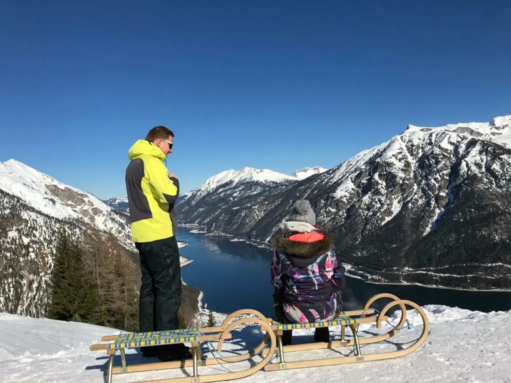 Achensee is het grootste bergmeer van Tirol en heeft een lengte van 9 kilometer en een breedte van 1 kilometer (omvang 6,8 km2 ). De regio rondom de Achensee is zowel in de winter als in de zomer erg populair. Qua toerisme is de verdeling 60% zomer en 40% winter. Je ziet dan ook dat het in de winter, ondanks dat wij in de Krokusvakantie daar waren, relatief rustig is.