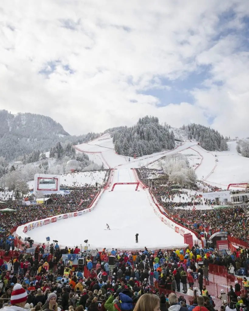 • Meer dan 100 evenementen nodigen je uit om langs te komen. Denk bijvoorbeeld aan de Hahnenkammrennen of de Freeride World Tour.