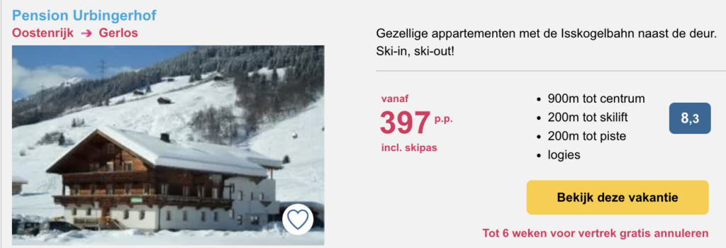 Wil jij volgend skiseizoen naar Gerlos en heb je nog niet geboekt? Wij hebben een aantal fantastische deals voor je verzameld. Klik op de button voor meer informatie, prijzen en om direct te boeken.