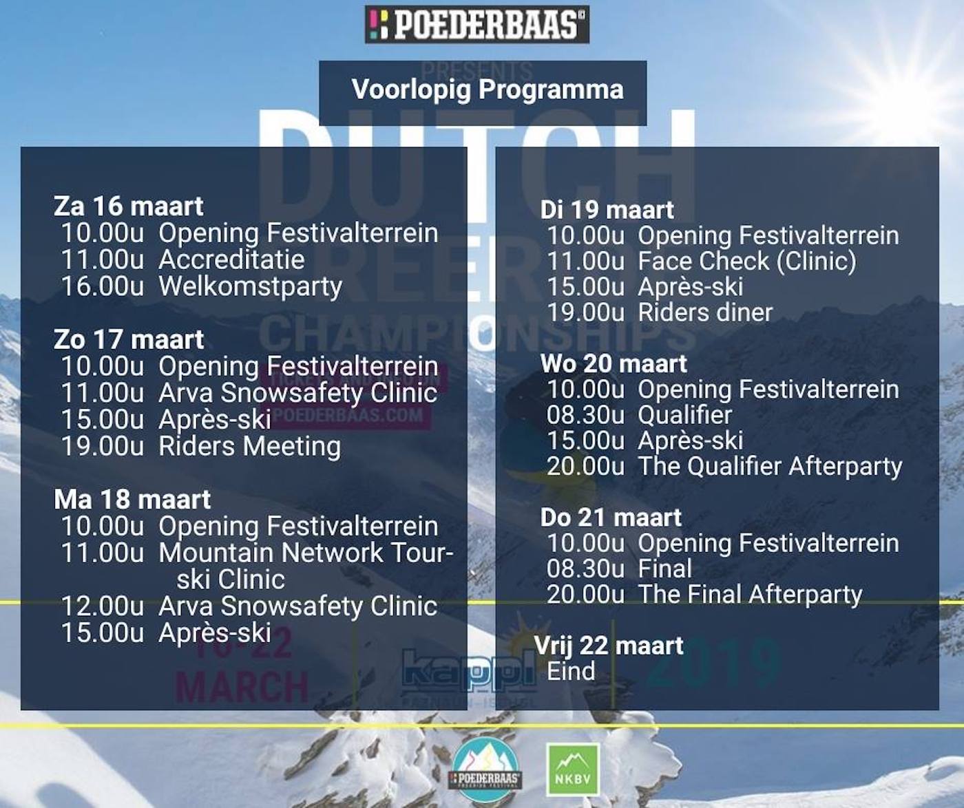 Poederbaas organiseert tijdens het festival ook het NK Freeride 2019. Dit doen ze dit jaar voor het eerst en deze wedstrijden vinden plaats op woensdag en donderdag. Er zijn vier categorieën bij deze wedstrijden: Ski Man, Ski Woman, Snowboard Man en Snowboard Woman.