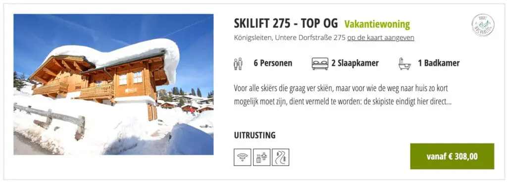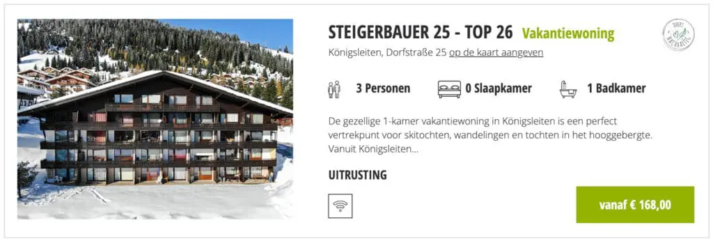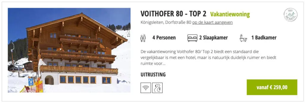 Samen met Zell am Ziller, Gerlos en Wald vormt Königsleiten de Zillertal Arena. Een populair skigebied dat al jaren heel wat Nederlanders trekt. Niet gek, je vindt hier ontzettend veel mogelijkheden voor een fijne vakantie in de sneeuw. Van skiën op de 143 km aan pistes tot lekker lunchen in de gezellige berghutten. Iedereen vindt hier zijn of haar lievelingspiste en er is voldoende uitdaging voor alle niveaus. Kun je nog niet skiën? Er zijn genoeg goede skischolen waar je gewoon in eigen taal skiles kunt volgen. Ideaal!