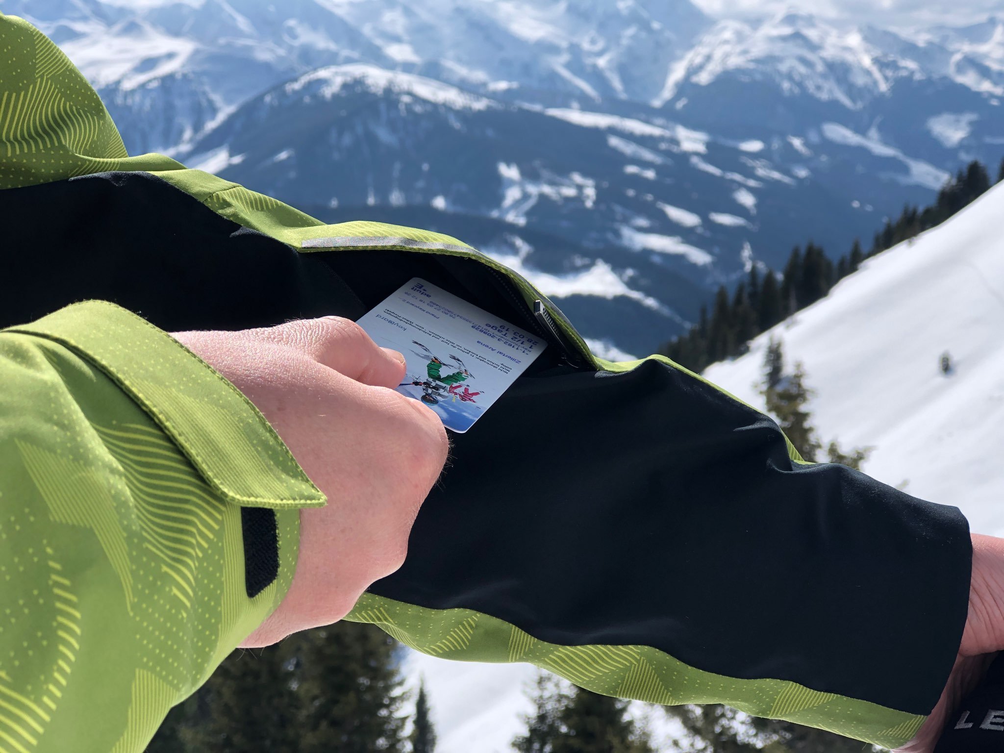 Sta je dan, ’s ochtends bij de lift zonder skipas. Super grap.
