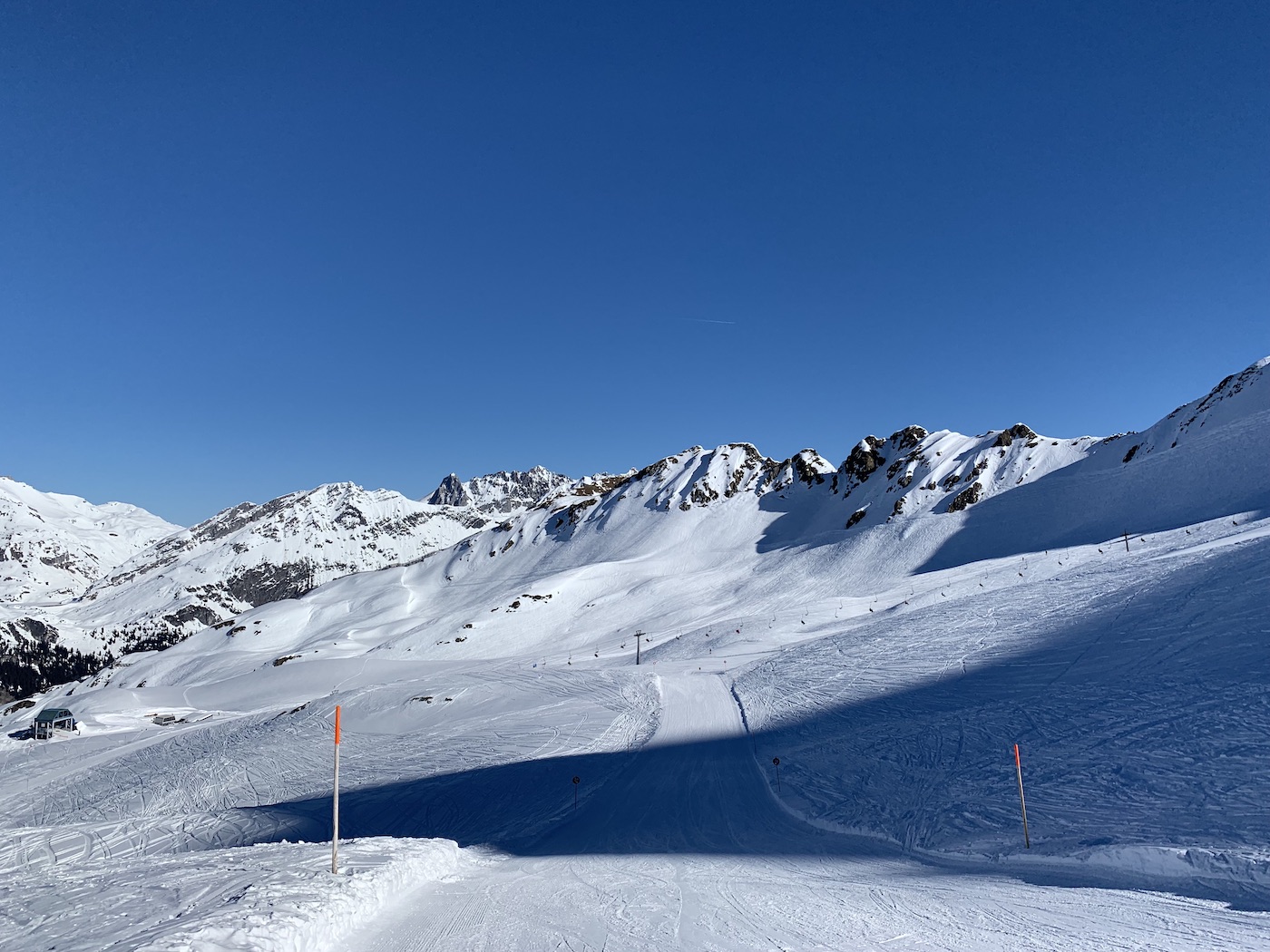 Het heeft de afgelopen weken flink gesneeuwd in Vorarlberg. Overal liggen metershoge sneeuwbergen langs de weg en de pistes zijn van uitstekende kwaliteit. ’s Ochtends zijn de pistes vrij hard, omdat het ’s nachts vriest en later op de dag wordt de sneeuw iets zachter. Van echte slush is geen sprake.