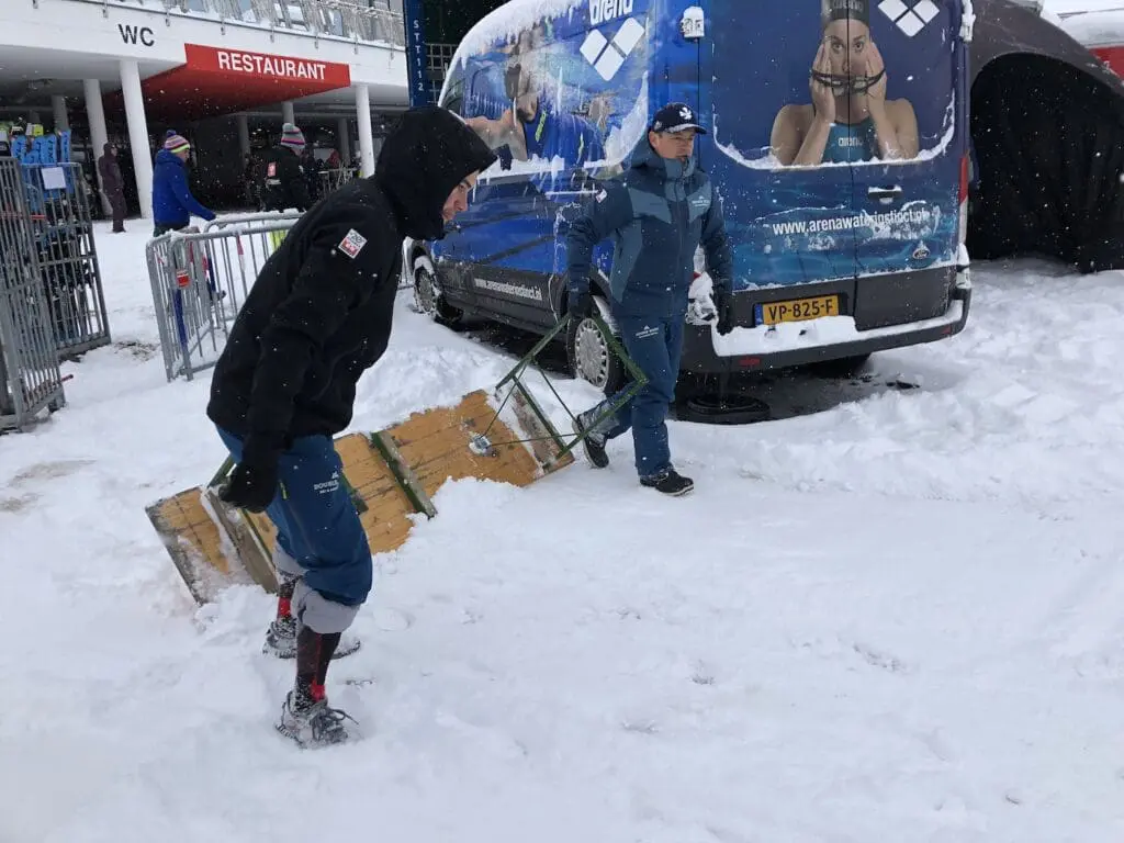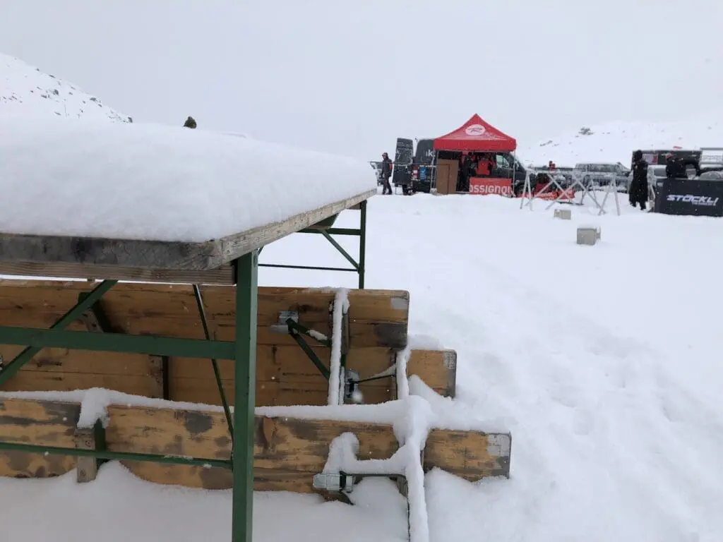 De voorspellingen gaven aan dat het vanaf dinsdagmiddag nog harder zou gaan sneeuwen. Om iedereen met al het materiaal en zwaarbeladen auto’s toch weer veilig naar beneden te laten gaan, werd besloten om dinsdag tot 12:00 door te gaan, in plaats van tot 15:00 uur. Een wijs besluit, want het begon inderdaad nog harder te sneeuwen!
