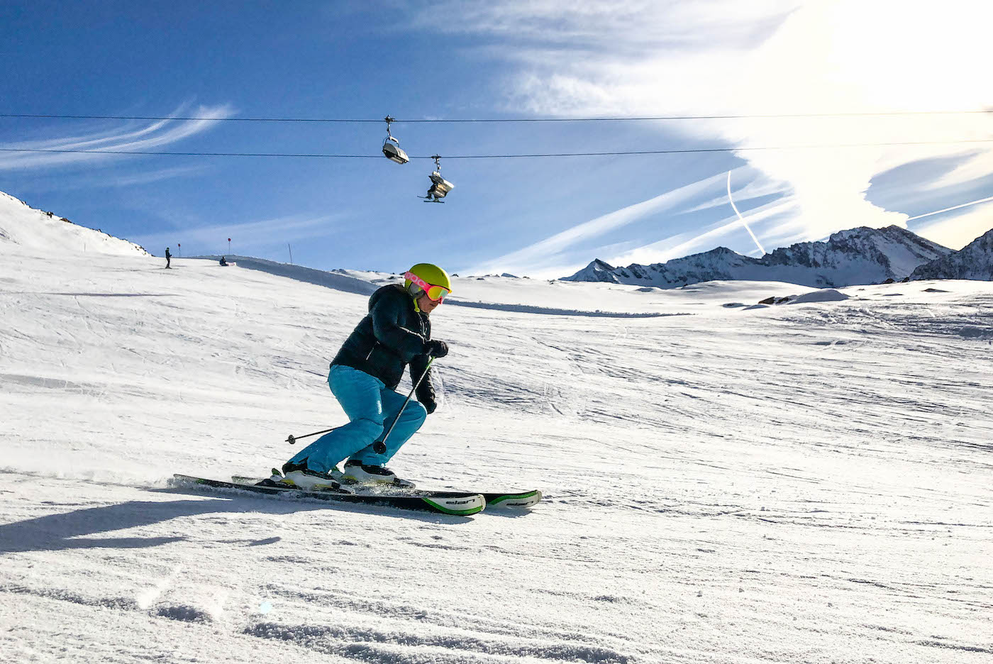 De bergtoppen in Innsbruck zijn nog groen. Op naar het Ötztal dus. Ook daar is het dal groen, maar hoog in de bergen is het wit, zoals je ook onlangs hebt gezien toen we bij De Winteropening in Sölden waren. Hoe het in Obergurgl was? Ik had natuurlijk wat webcambeelden gezien, maar hoe het er bovenaan de lift uitzag had ik niet durven dromen. Heerlijk sneeuw alsof het midden winter was én nog ribbels in de piste om 12.00u ’s middags. Waar maak je dat nou nog mee?