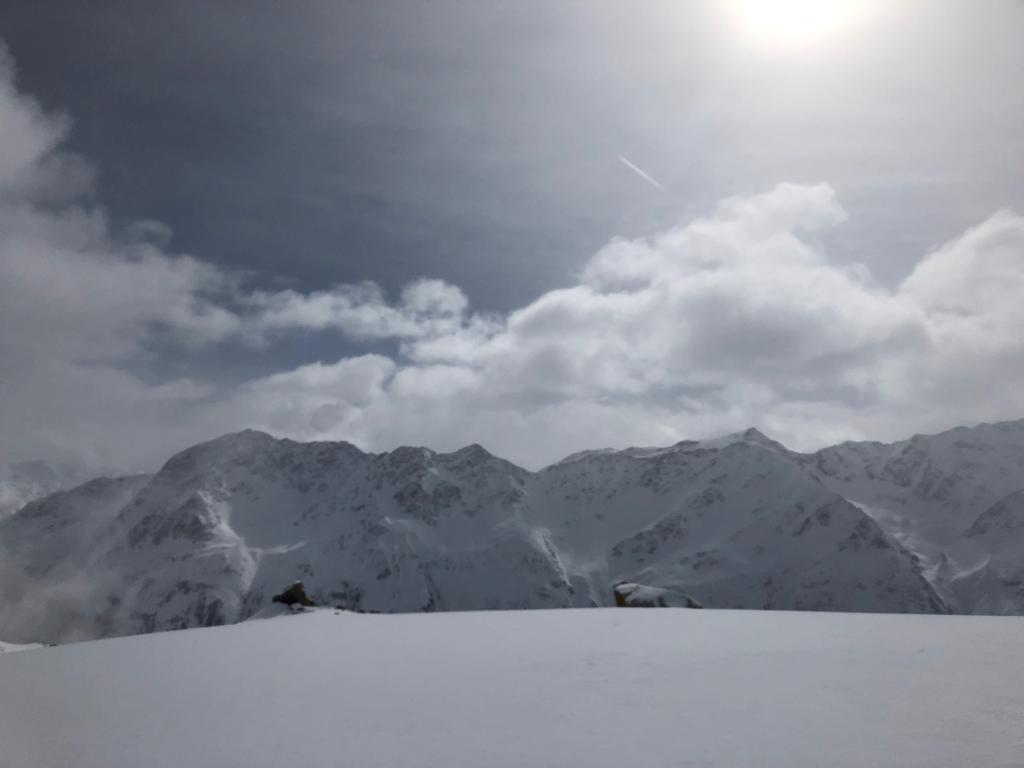 Zoals gezegd hebben we te maken met wisselvallige omstandigheden vandaag. Vanmorgen was het voornamelijk bewolkt en werden we weer voorzien van een verse laag met sneeuw. Gelukkig breekt het gedurende de ochtend open en zien we de zon ook af en toe door de wolken heen komen.