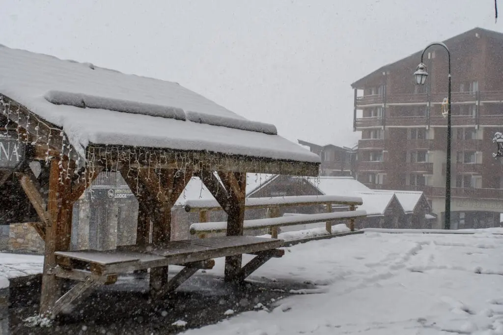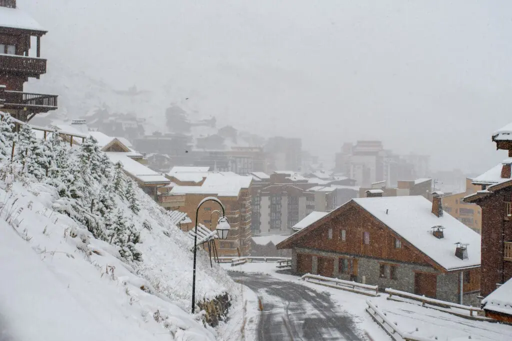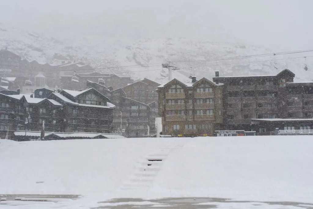 We kregen zojuist vanuit Val Thorens de eerste winterse beelden door. Enkele weken geleden werd het dorp al lichtelijk wit, maar vandaag kleurt het helemaal wit.