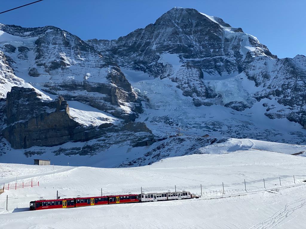 We werden vanochtend wakker in Interlaken en dat is een perfecte locatie om de Jungfrau Region te ontdekken. Je auto kun je lekker laten staan, want alles kan met de trein hier. Ze hebben zelfs skirekken in de trein.