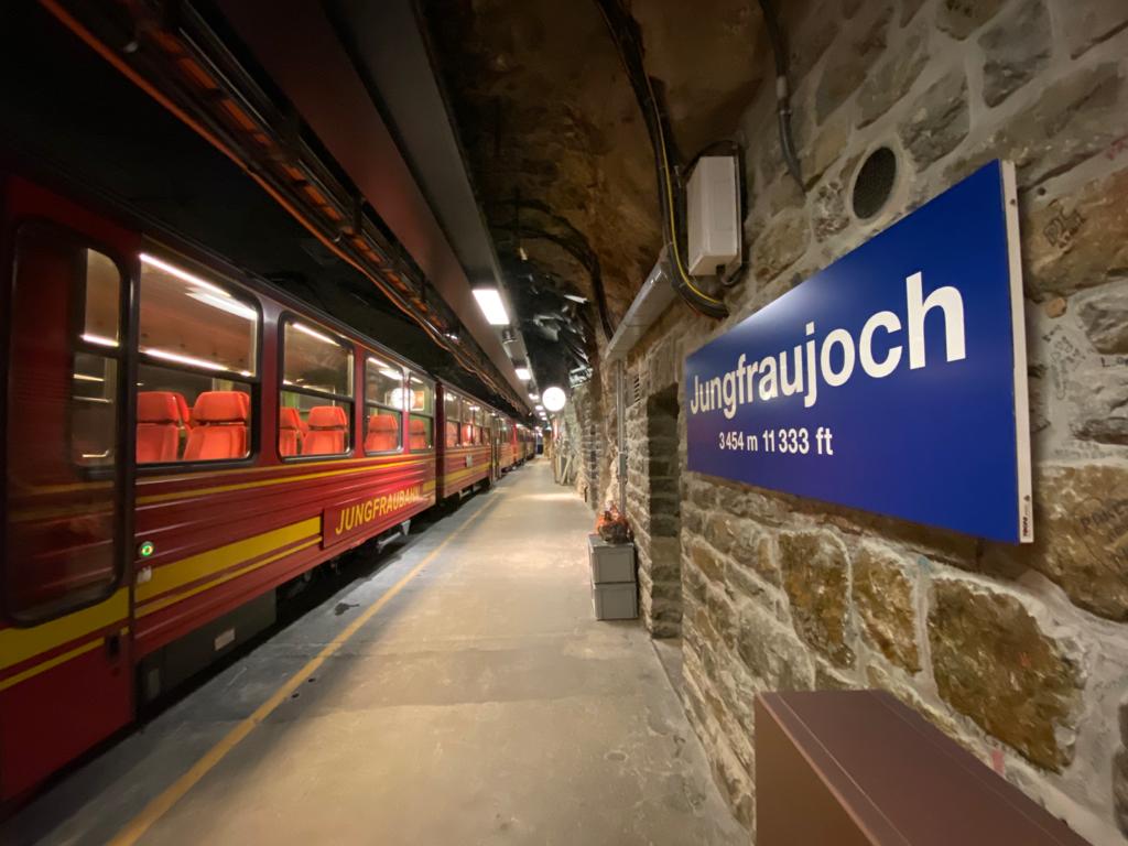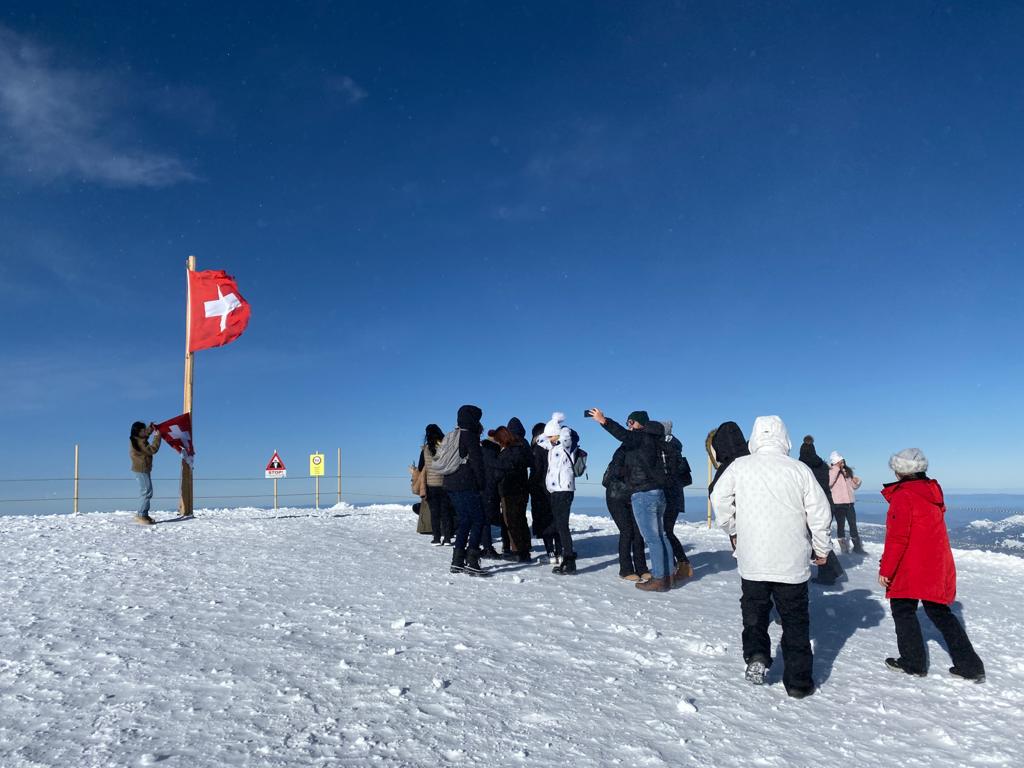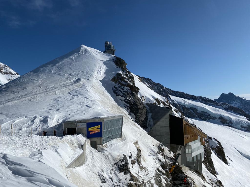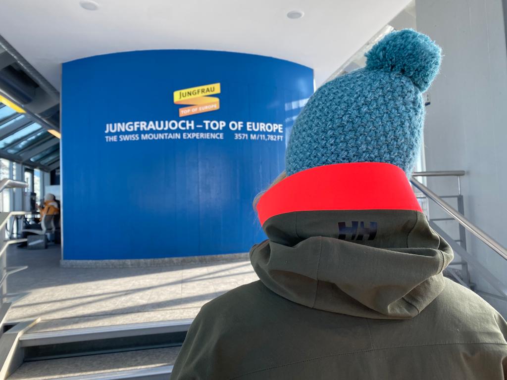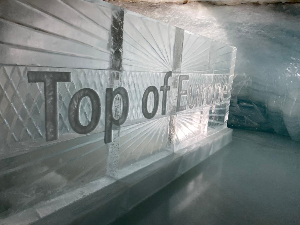 Naast een uitzichtsplatform vind je ook een ijsgrot op die hoogte en een soort museum. Leuk om te zien, maar het uitzicht is waarvoor je omhoog moet. En voor een foto met de Zwitserse vlag, vinden Aziaten. Die staan daarvoor in de rij. Grappig om te zien.