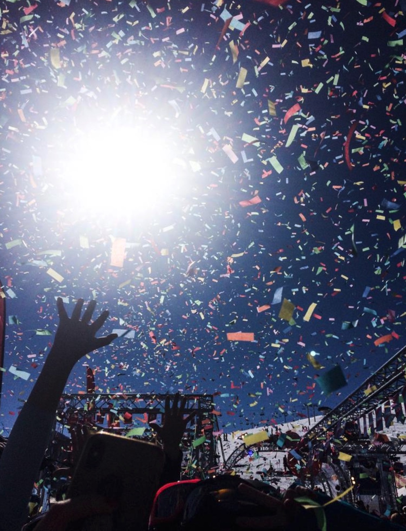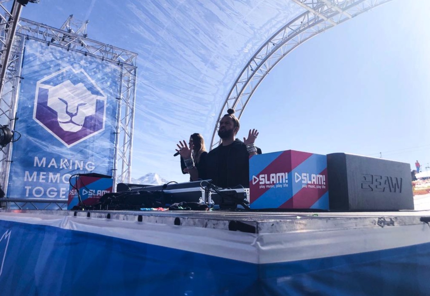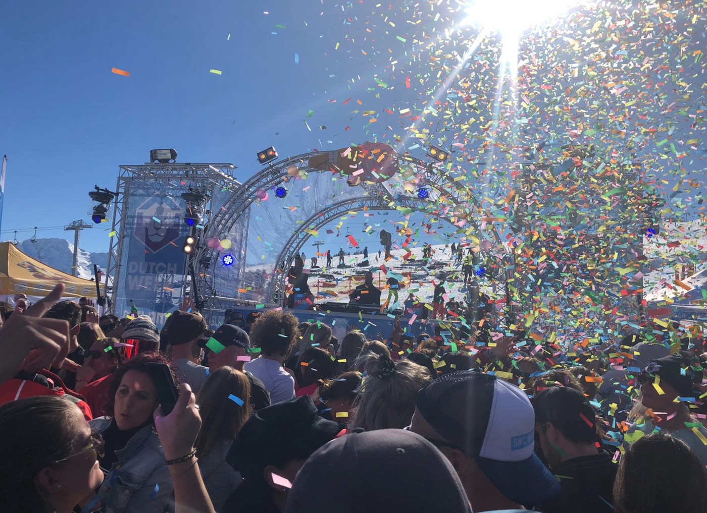 Frank, Joeri, Sebi, Jahna, Vera en Maurice zijn te vinden bij het Arena Center in Gerlos, bovenaan de Isskogelbahn. Daar is het al de hele middag gezellig en nu helemaal. La Fuente treedt daar nu op met zijn Full Colour Innercircle, wat betekent dat het een festijn van kleuren is door de confetti.