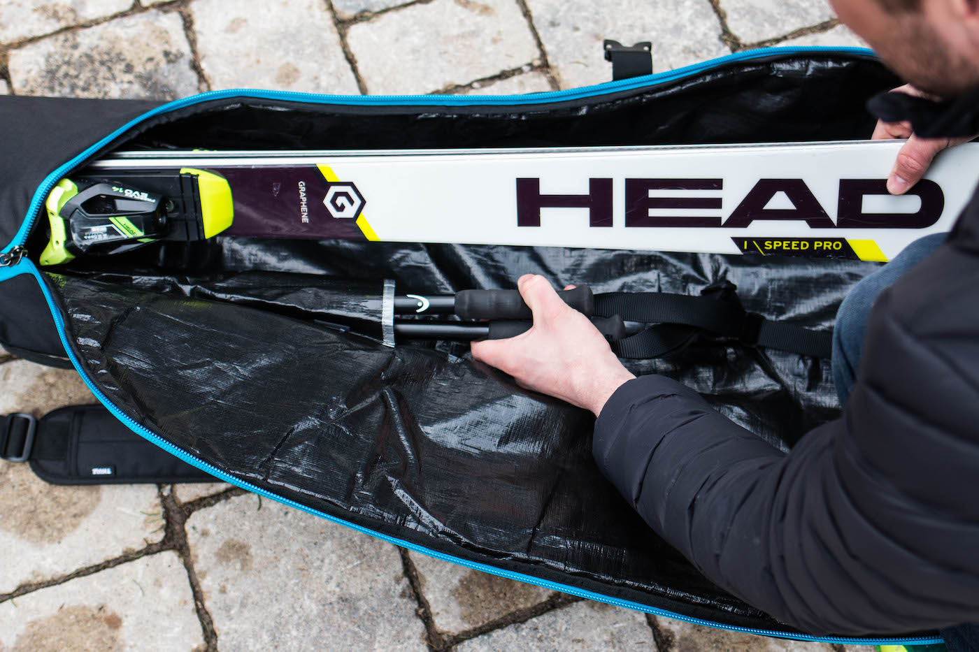 De Thule RoundTrip skitas is van mooi stevig polyester gemaakt. De tas is gevoerd en bevat compressiebanden waarmee de ski’s strakker aangetrokken kunnen worden. Om de ski’s en buitenkleding extra te beschermen zitten er twee hoezen met treksluiting in de tas die om de ski’s heen gedaan kunnen worden. Daarnaast zit er een apart vak in de tas waarin de skistokken opgeborgen kunnen worden. Verder is de schouderriem die bij de tas zit afneembaar en zit er een stevig handvat in het midden aan waardoor het ook mogelijk is om de tas los te dragen. De skitas is geschikt voor één paar alpineski’s of twee paar langlaufski’s tot een lengte van 192 cm, plus stokken. Tegenwoordig horen we steeds vaker dat er skimateriaal wordt gestolen op de luchthaven. Ook hier is rekening mee gehouden. Het is namelijk mogelijk om de ritssluiting te vergrendelen. Het slot wordt wel apart verkocht.
