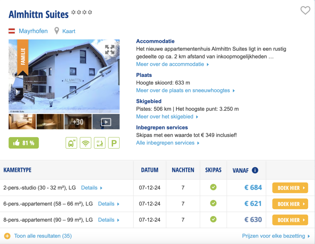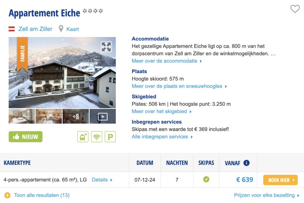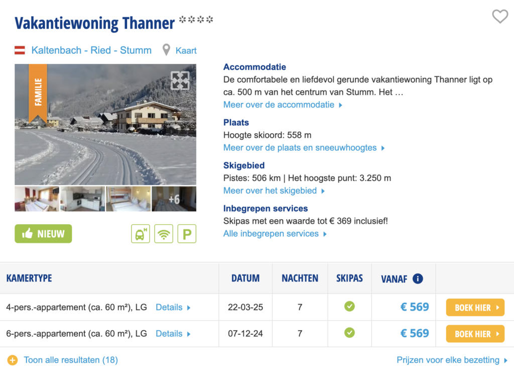 Of je nu kiest voor een gezellig appartement in een van de knusse dorpen of een moderne accommodatie vlak bij de liften, je vindt in het Zillertal altijd een verblijf dat aansluit op jouw wensen. Dit is hét moment om je wintersport te boeken. Met vroegboekdeals en speciale aanbiedingen op appartementen in het Zillertal kun je veel besparen op je accommodatie. Naast scherpe prijzen bieden veel wintersportpakketten ook extra voordelen, zoals inbegrepen skipassen, gratis skihuur of flexibele annuleringsvoorwaarden.