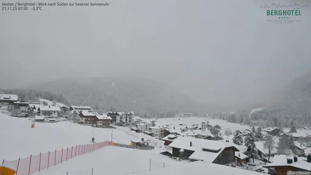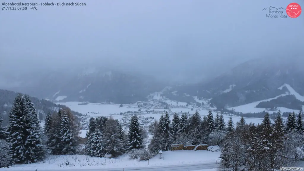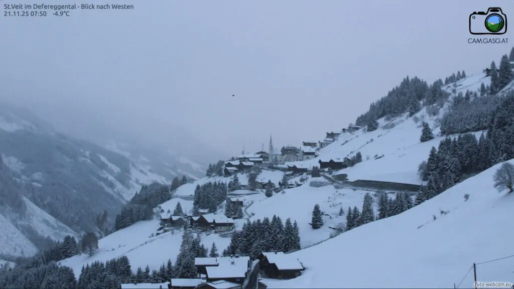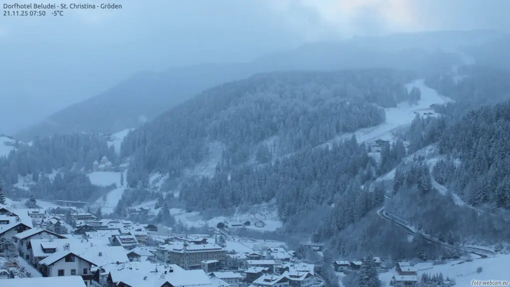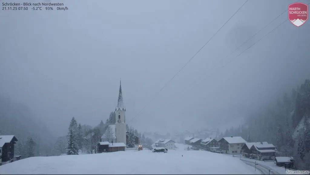 Een mix van polaire lucht en een actieve storing zorgt sinds gisteren voor een nieuwe winterinval. De sneeuwgrens daalde in veel regio’s naar 400-700 meter, lokaal zelfs daaronder. Hierdoor zijn niet alleen de hoger gelegen skigebieden prachtig wit, maar ook dorpen die normaal pas later in het seizoen sneeuw zien. In een groot deel van van de Alpen viel sinds gisteren 5 tot 20 cm sneeuw in de dalen en hogerop 20-40 cm. De webcams tonen besneeuwde straatjes, witte bossen en skiweides die er ineens razendsnel winters uitzien.