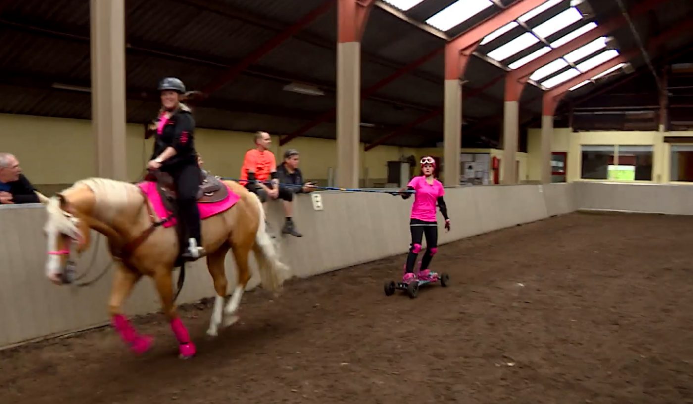 Het concept van Horseboarding is simpel. Je hebt een paard, je hebt een touw en je hebt een board. Het paard trekt je voort en op je board ga je erachteraan. De praktijk is natuurlijk iets ingewikkelder met de spullen die je nodig hebt, een ruiter, etc. Volgens de omroep komt de sport uit Engeland en wordt het daar al twintig jaar beoefend. Wij vinden het echter een leuk concept en wensen de zussen heel veel plezier en succes toe!