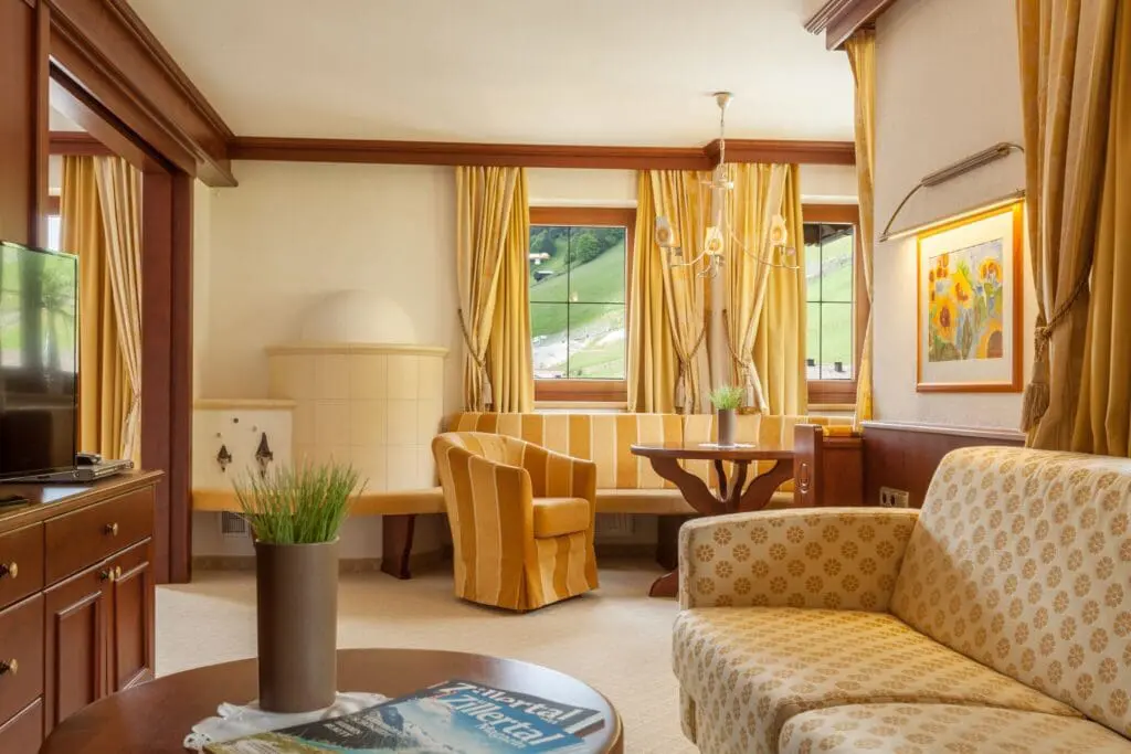 De inrichting van het hotel en de architectuur van de buitenkant zorgen voor het echte vakantiegevoel. Het is modern, maar de echte Oostenrijkse sfeer is intact gebleven door het gebruik van de juiste materialen. Zo zijn de receptie, bar en restaurant voorzien van talloze houtbewerkingen, wat zorgt voor warmte en gezelligheid. Ook de kamers hebben een luxe uitstraling, maar elke keer weer met gevoel en smaak ingericht. Het hotel klopt dus helemaal qua uitstraling en beleving.
