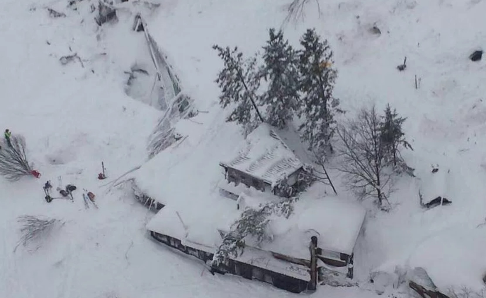 Het midden van Italië werd gisteren flink getroffen door aardbevingen met een sterkte van meer dan 5 op de schaal van Richter. Door deze aardbevingen werd in de bergregio Abbruzzen een gigantische lawine getriggerd. Die lawine bedolf het complete hotel. Italiaanse reddingsteams vochten tegen de tijd om de mensen levend onder de sneeuw vandaan te halen.