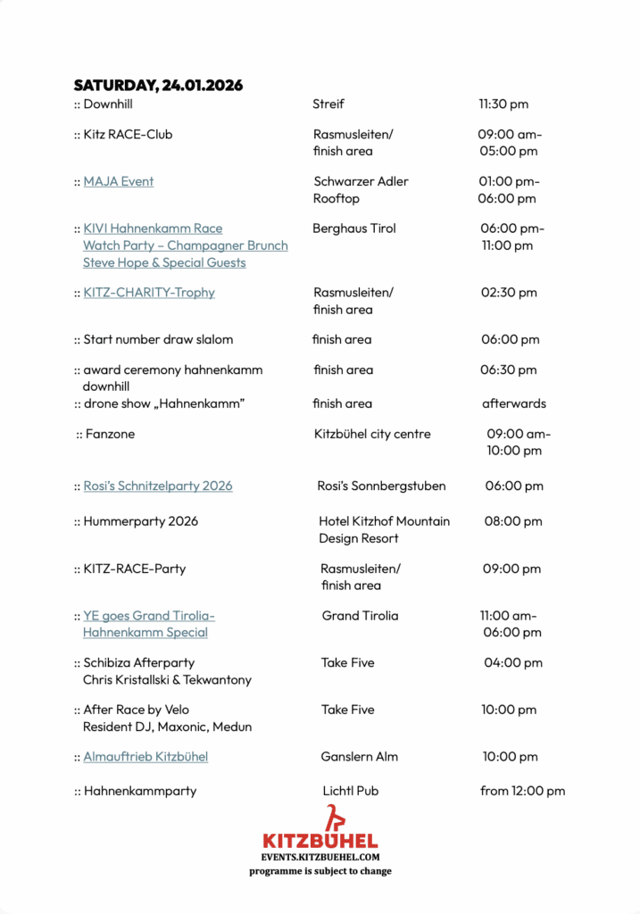 - gemiddeld boeken 25.000 personen een verblijf in Kitzbühel dit weekend