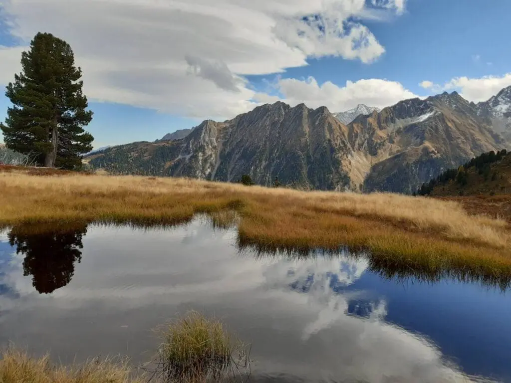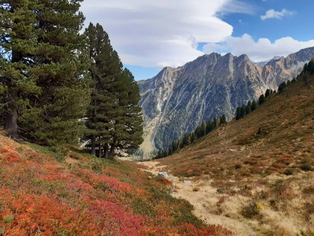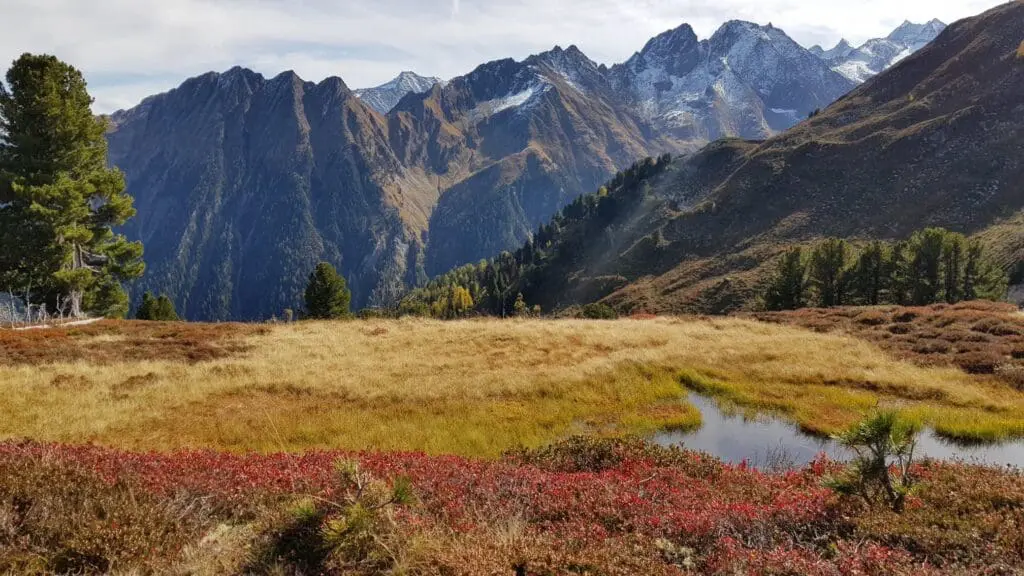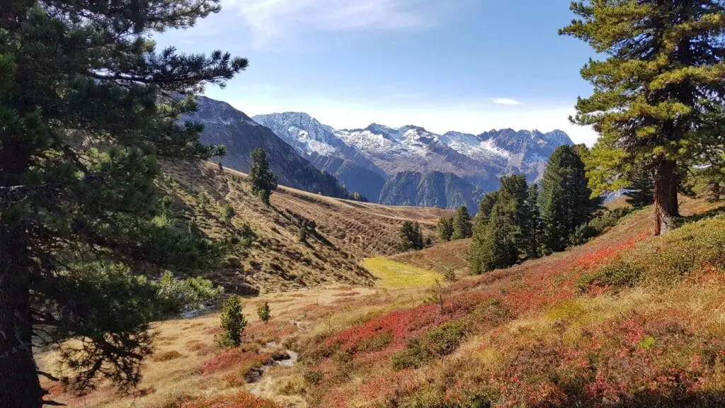 Heerlijk nieuws, want ook de lokale bevolking is wel klaar met die warmte. Sneeuw hebben we nodig en als er straks een dik pak met sneeuw valt, is het noodzakelijk dat de ondergrond een beetje afgekoeld is. Tot die sneeuwval kunnen we nog wel genieten van prachtige herfstplaatjes vanuit de Alpen. De sneeuwgrens daalt langzaam, maar in de dalen is het een vuurzee aan prachtige kleuren.