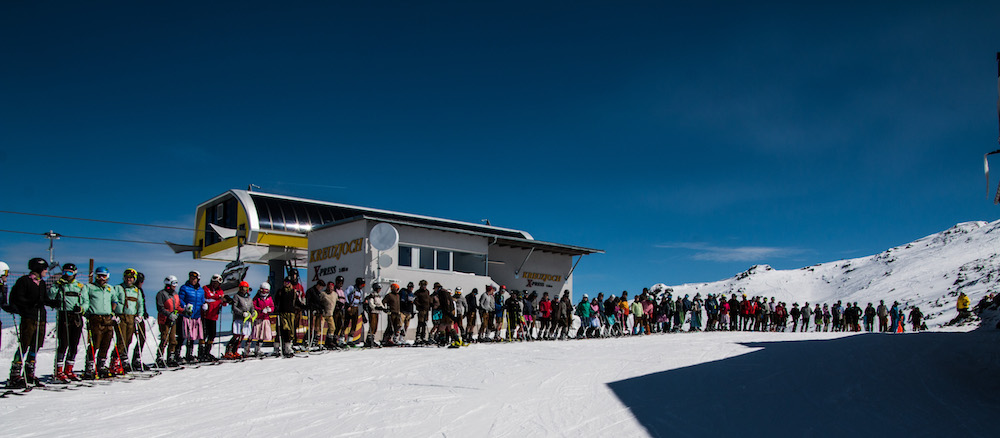 Het is een bijzonder gezicht op de pistes van de Zillertal Arena. Zo’n 80 procent van alle wintersporters in het skigebied skiede gisteren niet in hun normale skikleding, maar in klederdracht. De reden: iedereen die in Lederhosen of Dirndl aan de kassa verschijnt ontvangt een gratis skipas. Al enkele jaren op rij wordt het evenement georganiseerd als feestelijke afsluiting van het skiseizoen. Na vandaag sluit het skigebied dan ook z’n deuren.