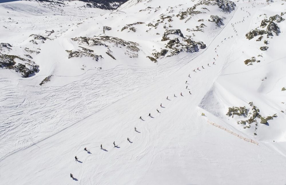 Als leuk side-event werd gisteren gepoogd de langste skislang ter wereld te maken met wintersporters in klederdracht. Om 11.00 uur stonden zaterdag ter hoogte van de Arena Stadl in Zell am Ziller daarvoor zo’n 150 wintersporters klaar. Kort daarna kwamen die allemaal naar beneden alsof ze deel uitmaakten van een skiklasje. Een drone legde het tafereel vast en het resultaat is verbluffend. Wat een prachtige foto!