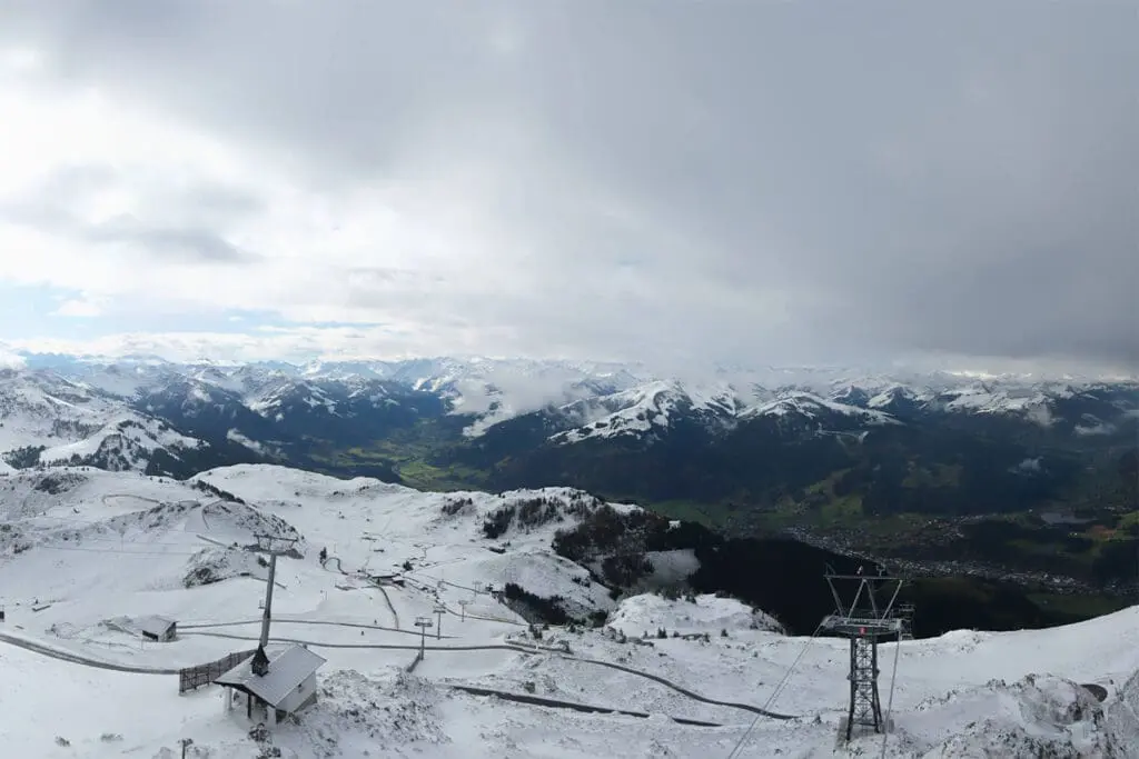 Het is de kracht van dit koufront: het contrast tussen donderdagmiddag en vrijdagochtend. Kijk bijvoorbeeld naar de webcam van de Kitzbüheler Alpen; waar we gisteren nog bruine hellingen en hier en daar een plukje wit zagen, ligt nu een deken van verse sneeuw.