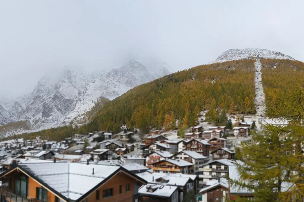 In de Zwitserse en Franse Alpen is het lokale beeld eveneens indrukwekkend, zoals bijvoorbeeld in de regio’s rond Zermatt en in Val Thorens (onderstaande beelden):