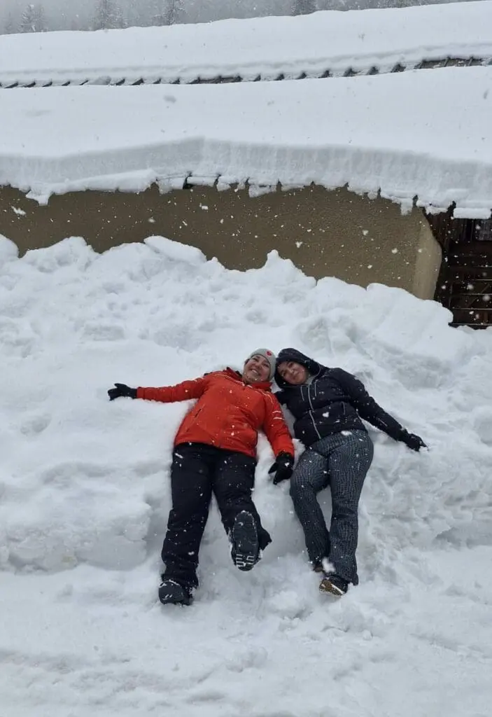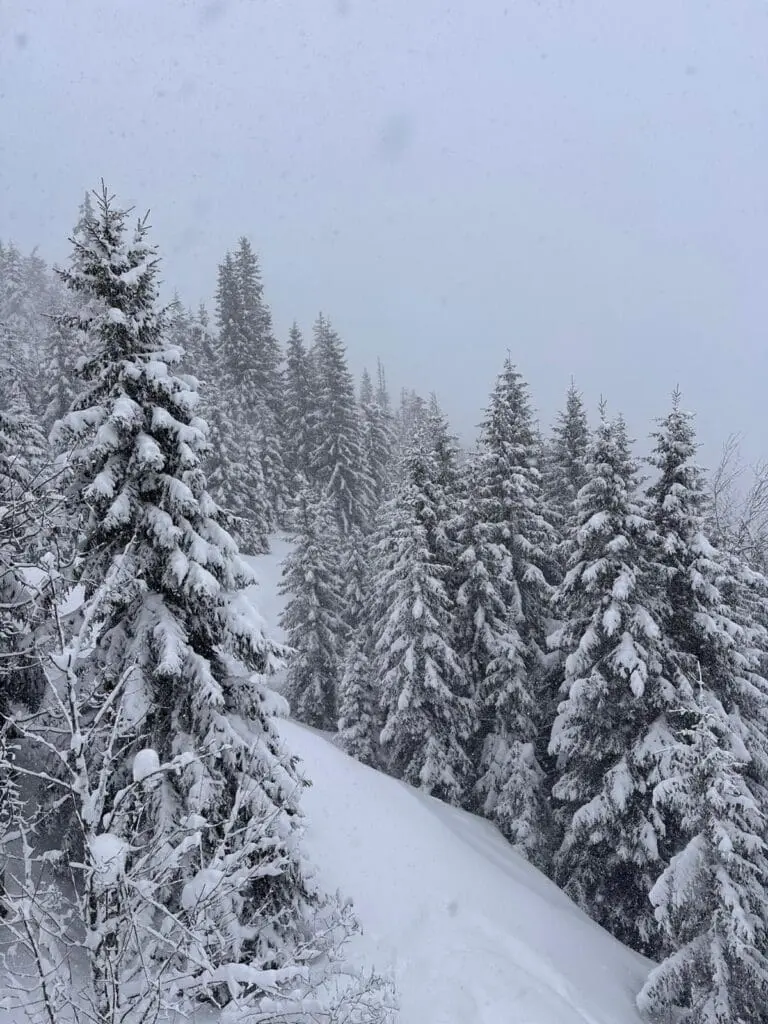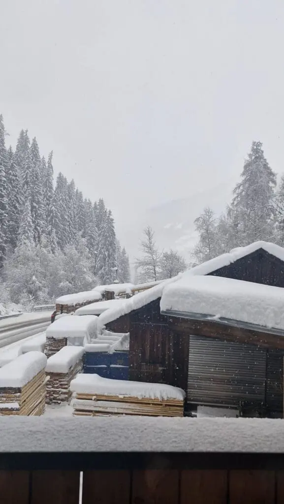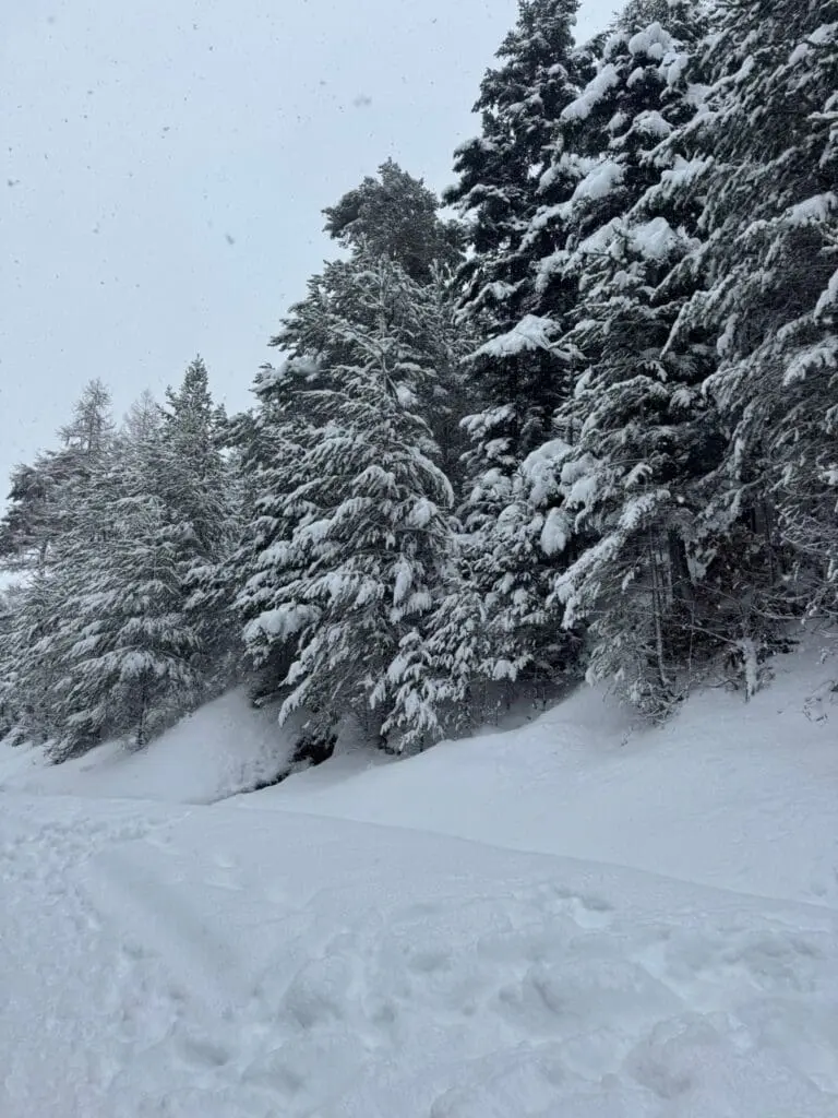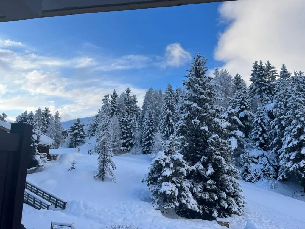 Ook bakken met verse sneeuw in La Norma bij Kim Kleijn – van Werven! Wat een dikke lagen op de bomen: