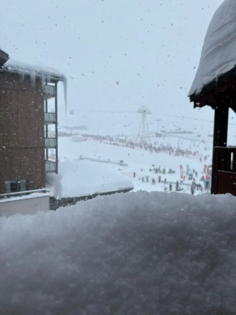 Gisteren kon je eigenlijk zien hoeveel sneeuw er is gevallen in Belle Plagne toen het een beetje opklaarde. Wow! Bedankt voor het doorsturen: Janine van der Kolk.