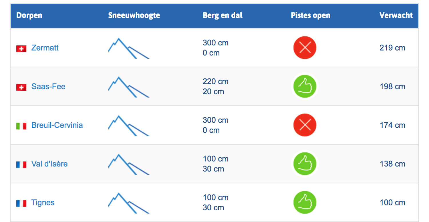 2 meter sneeuw voor Saas-Fee en Zermatt