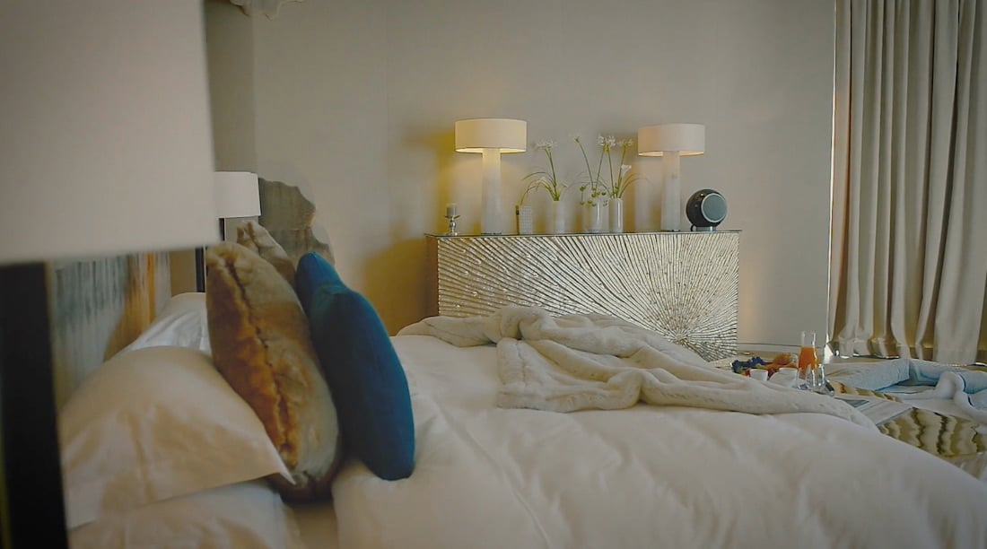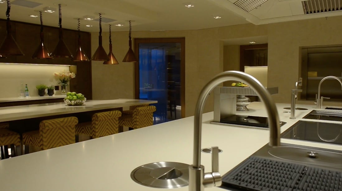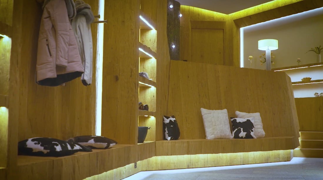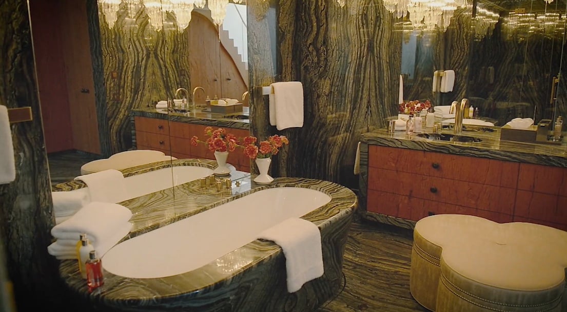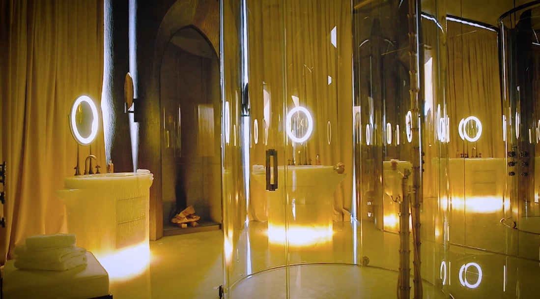De ontbijtkamer heeft een 24-karaats bladgoudmuur en een op maat gemaakte eiersculptuur die het plafond siert. Een van de meest unieke verdiepingen van het huis wordt beschreven als een ondergronds meer. Het is een glimmend zwembad met Swarovski-kristallen lichten die elke kleur licht kunnen geven. Geen zin om te zwemmen? Dan kan je lekker bubbelen in de jacuzzi naast het zwembad.