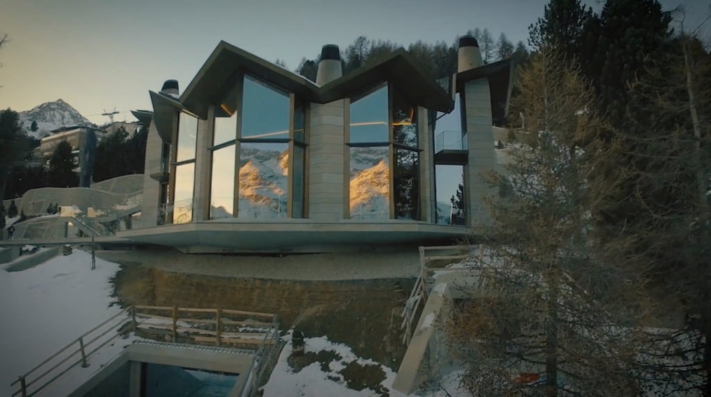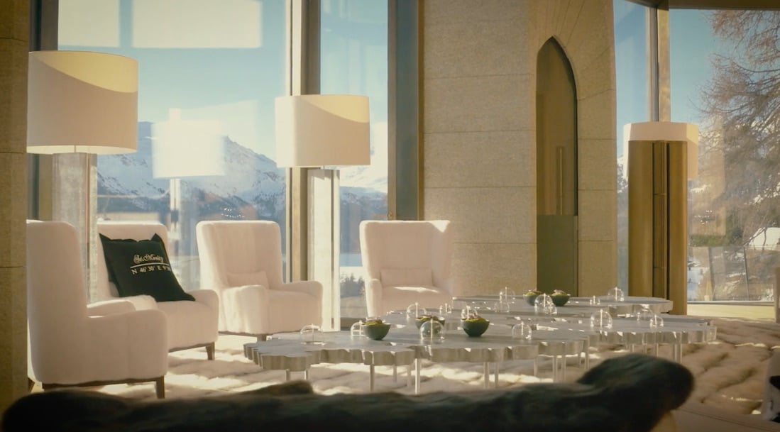 Door de ramen die de hele muur beslaan heb je een adembenemend uitzicht over de pistes van St. Moritz. In de indrukwekkende centrale hal vind je een zwevende trap die je naar een van de zeven verdiepingen brengt. Niet te missen is een entertainmentlounge die speciaal is ontworpen voor gasten. Hier toont een met goud bedekt plafond fantastische flair met zijn 178 zwevende Swarovski-kristallen kaarsen.