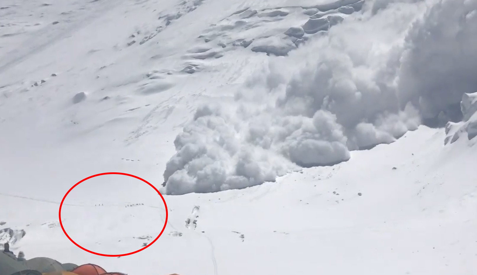 Het zal je maar gebeuren. Je bent bezig met de klim naar de top en een paar honderd meter boven je zie je een lawine op je afkomen. Wat doe je dan? Waarschijnlijk heeft de groep in de onderstaande video flink wat kruisjes geslagen en hoopvol naar boven gekeken. Dat is namelijk het enige dat je op dit moment kunt doen, want ervoor weg proberen te ‘rennen’ heeft weinig zin. De lawine had namelijk een bizarre omvang!