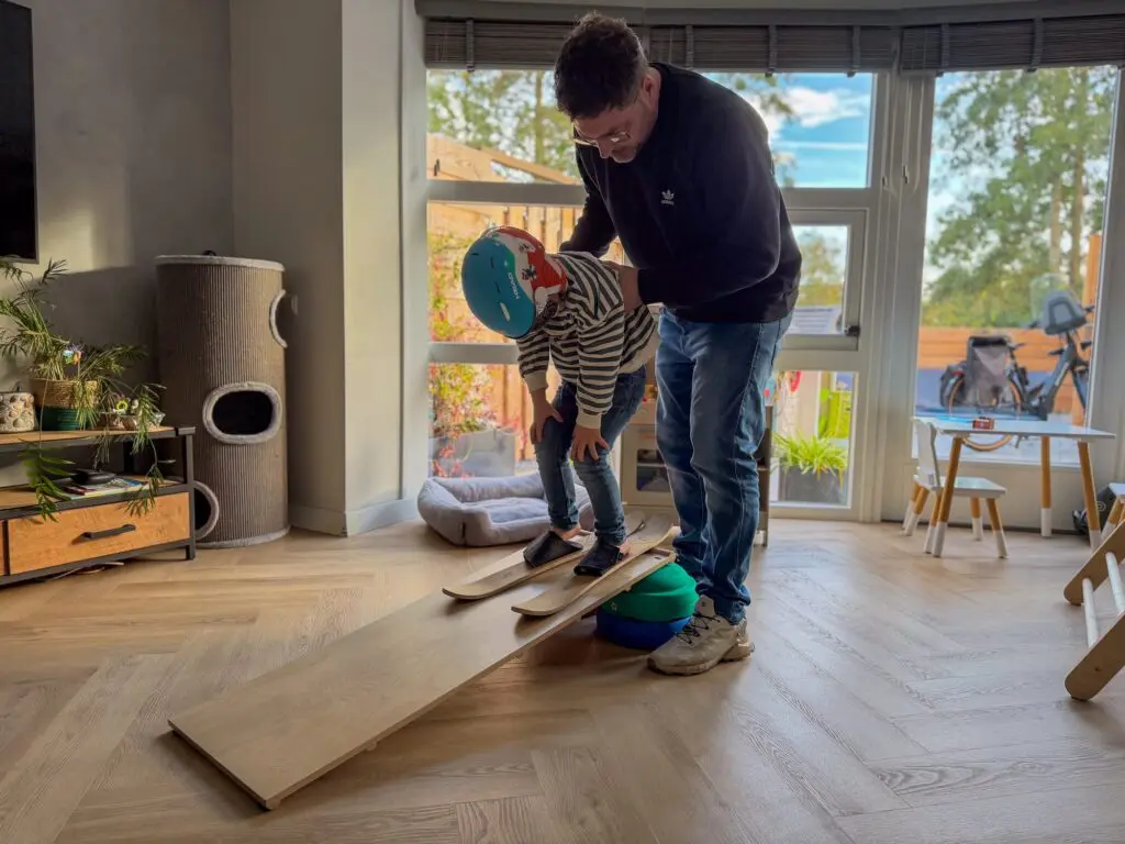 Als fanatiek skiër en vader van twee zoons van 2 en 4 jaar scroll ik regelmatig door mijn Instagram-feed, hopend op verse sneeuwbeelden of nieuwe gear. Maar een paar weken geleden stopte ik abrupt bij een filmpje dat niets met echte sneeuw te maken had: ik zag kinderen op ski’s door een woonkamer glijden. Mijn hart ging direct sneller kloppen. Dít wilde ik ook voor mijn kinderen. Kort daarna werden de ‘drySki’ kinderski’s bezorgd. En ik kan je vertellen: ze hebben inmiddels een vaste plek in onze woonkamer veroverd.
